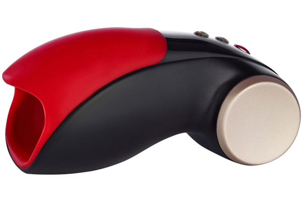 赤×黒の洗練されたデザインが格好いい!強力振動で亀頭を激しく刺激する電動オナホ。