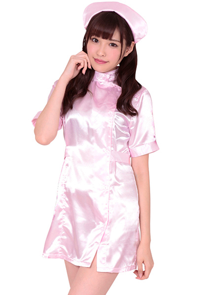 ミニ丈ワンピースのギリギリ感と、清楚なイメージのナース姿のギャップはとっても誘惑的!光沢感のあるキュートなピンクカラーが、セクシーさと可愛らしさの両方を演出してくれます。