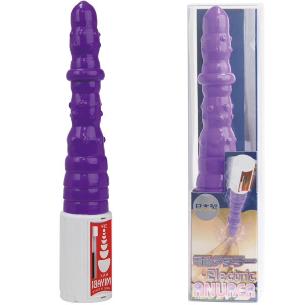 イボ&リングのデコボコボディーが腸内&括約筋をとことん責め立てる、パープルカラーの電動アナルグッズです。