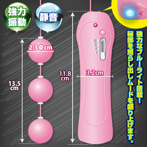 3つ並んだボールのうち、先端のボールだけにローターを搭載!3段階の強力振動がじんわりとした快感を伝えます。