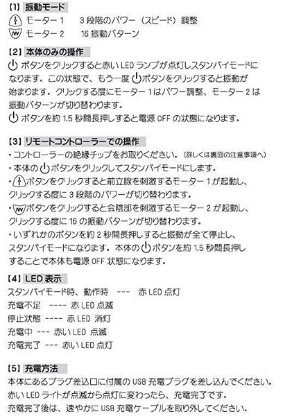 ●高品質シリコンによる滑らか質感●もこもこカーブの二段凹凸ボディ●電源(本体):短押しON、長押しOFF●先端部→360度回転、3段階速度調節●会陰部→イボイボ突起、16種類振動●リモコンボタンを押すごとに切替え●USBのフル充電(180分)で約90分稼働●リモコンなしで本体のみでも使用OK●お手入れ簡単な生活防水タイプ。