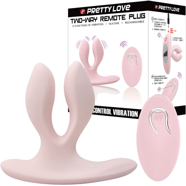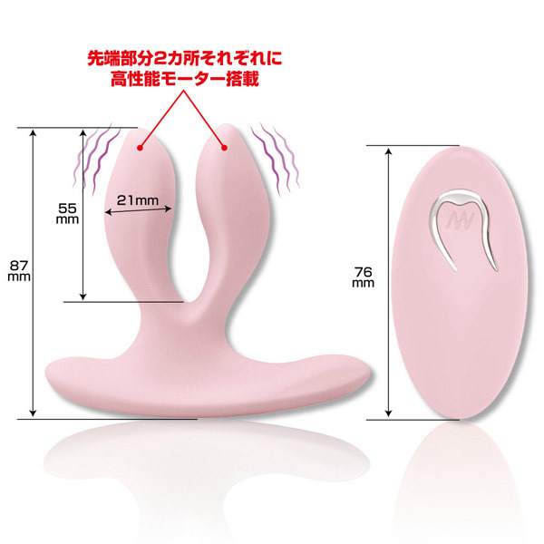 前後問わずに挿入可能!ユニークな二股プラグデザインのリモコンローター「プリティラブ ツーウェイリモートプラグ」。