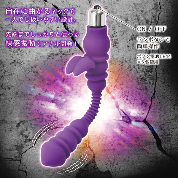 さらに、先端までしっかりと伝わる強力バイブレーションが前立腺を直撃!自在に曲がるフレキシブルネックと、ワンボタンの簡単操作で一人でも扱いやすい設計です。