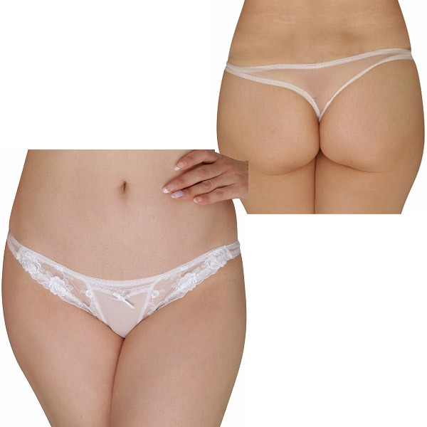 シースルー素材でアソコも透け透けなセクシーTバックショーツです♪白をベースとしたこちらのショーツ、フロント部分に小さめのフラワーを刺繍であしらっていて、気品と清潔さを兼ね備えた美しいデザインとなっています。