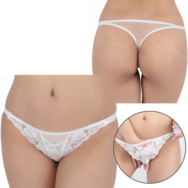 美しくも大胆にアピールする穴あき仕様の日本製Tバック。
