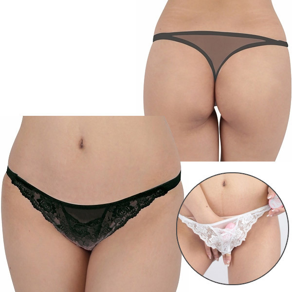 魅惑の黒で大人の女を演出するオープンクロッチ仕様の日本製Tバック。