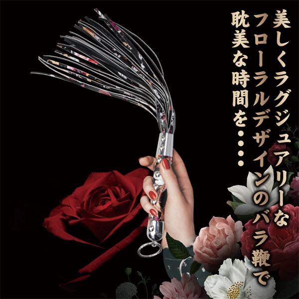 美しく上品なフローラルデザインの鞭で官能的なひと時を……持ち手やムチ部分に花模様をちりばめたお洒落なバラ鞭。