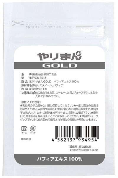 とめどなく溢れる「やりまんGOLD (パフィアエキス100%)」!他の飲み物の本品を入れて薄めてお飲み下さい。