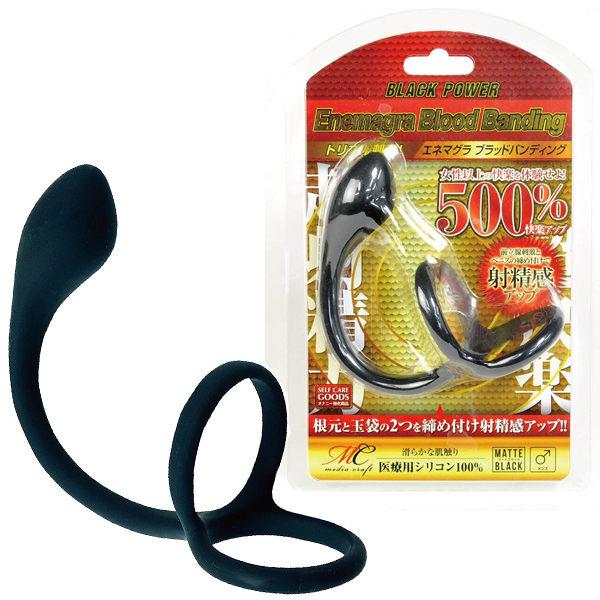 いつもの射精感がさらにアップ!根本と玉袋の2つを締め付けながら、前立腺への刺激と会陰部の圧迫も行える100%医療用シリコン素材のコックリング付きアナルプラグ「エネマグラ (ブラッドバンディング)」です。