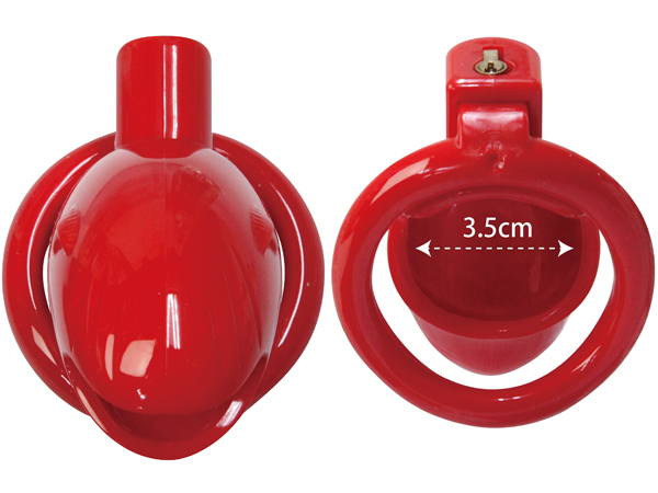 固定リングと全長7cm、内径3.5cmのケージを組み合わせて勃起を徹底管理!上部にある鍵穴から金属錠を差し込み、付属の鍵で施錠してお使いください。