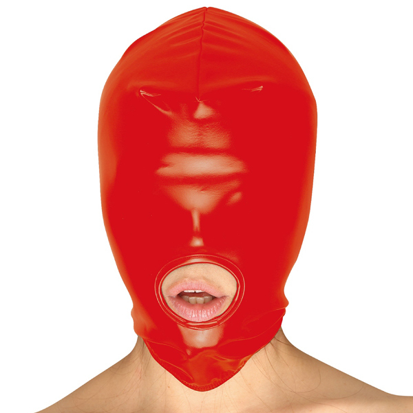 口だけを円形に露出!日本国内の工場で縫製され、厚手のストレッチエナメル生地を使用した口開きタイプのフェイスマスク。口元を露にする事で幅広いフェティッシュなプレイが可能です。