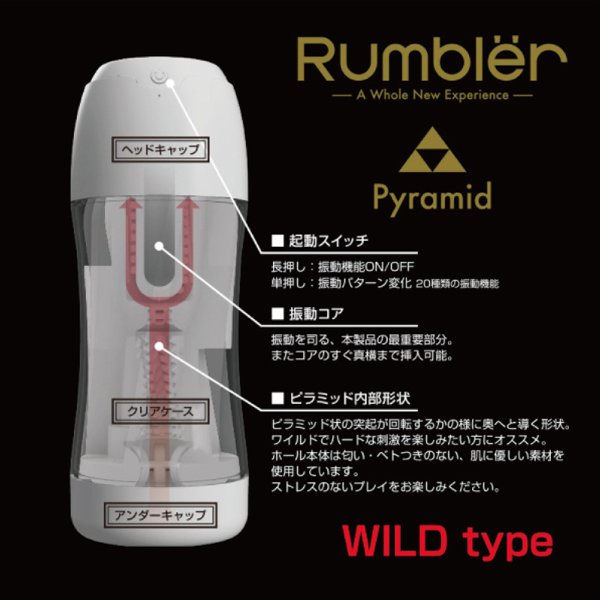 野性味あふれるハードな刺激!強力振動とピラミッド型の突起で激しく責めるUSB充電式の電動オナホ。