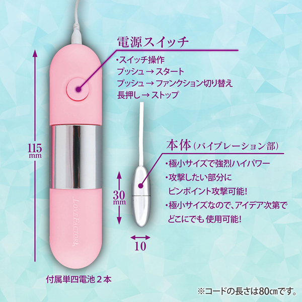 【単四電池×2本(付属)】長さ3cm、幅1cmの超ミニローター。