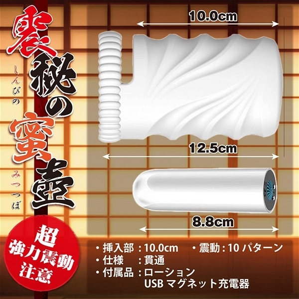 貫通型 パッケージ:12.5×9.0×5.0cm 本体:12.5×8.8cm 重量:ホール154g・ローター57g USB充電式