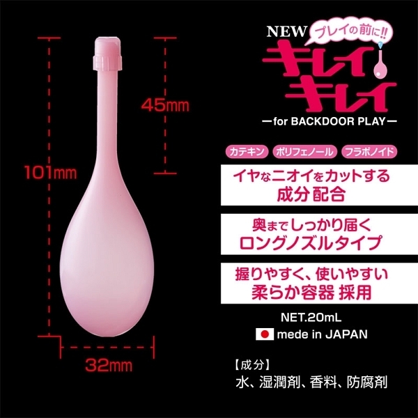 バックドア前の洗浄用アイテムでイヤなニオイをカットする成分を配合!爽快なプレイには欠かせません♪特注のロングノズルは奥までしっかり届く様になっていて、柔らかく握りやすいので使用することが可能です!カテキン、ポリフェノール、フラボノイドを配合♪国内の工場で作られた日本製で安心してお使いいただけます。