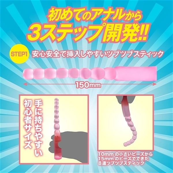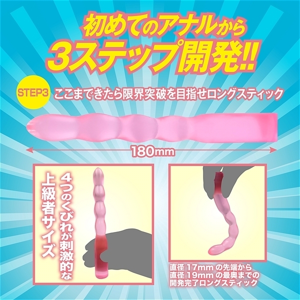 初めてのアナルから3ステップ開発用3本セット!!男女兼用ソフトな弾力素材を採用した日本製。