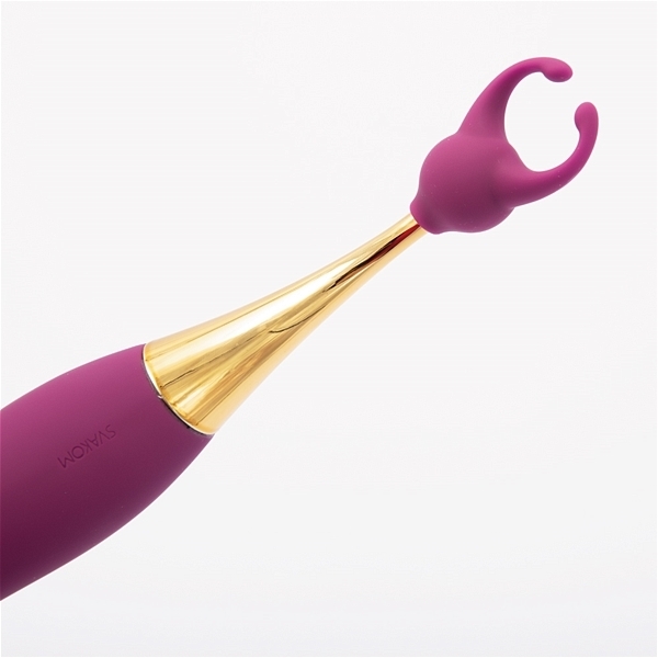 ヘッド持ち手の部分は挿入も可能なスリムバイブで、奥(ポルチオ)やGスポットへの刺激もOK!2種類の専用アタッチメント付きで、ピンポイント刺激に変化をもたらす前戯に最適なバイブです。