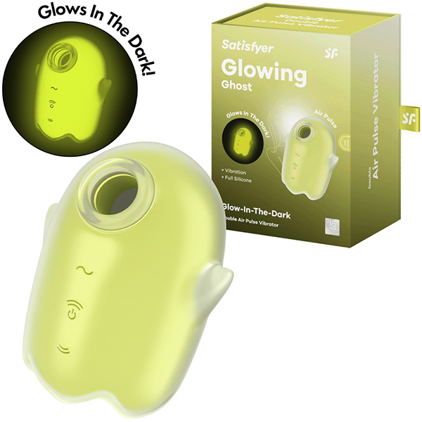 ラブグッズには見えない!遊び心溢れるキュートなデザインの吸引バイブ♪蓄光仕様により暗闇でぼんやりと光るキュートなオバケのデザイン。