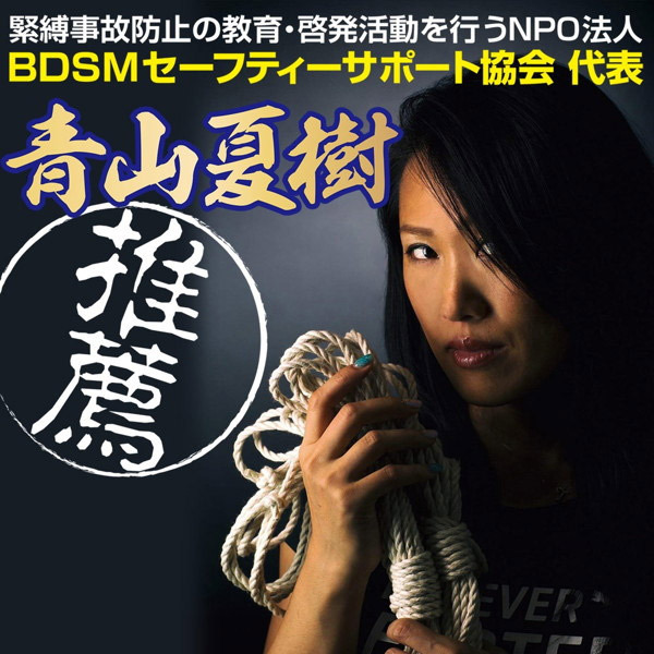 緊縛事故防止の教育・啓発を行うNPO法人BDSMセーフティーサポート協会代表の女緊縛師「青山夏樹」推薦!安心・安全に使用できるSMグッズです。
