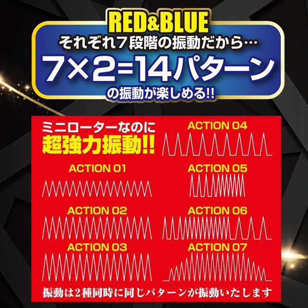 異なる振動を尿道と裏スジの2ヶ所同時に当てる事で、亀頭への刺激に立体感が加わり深みのある快感に!ローターの振動パターンは連動して変化する7段階振動を搭載。