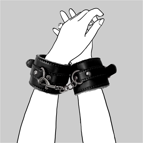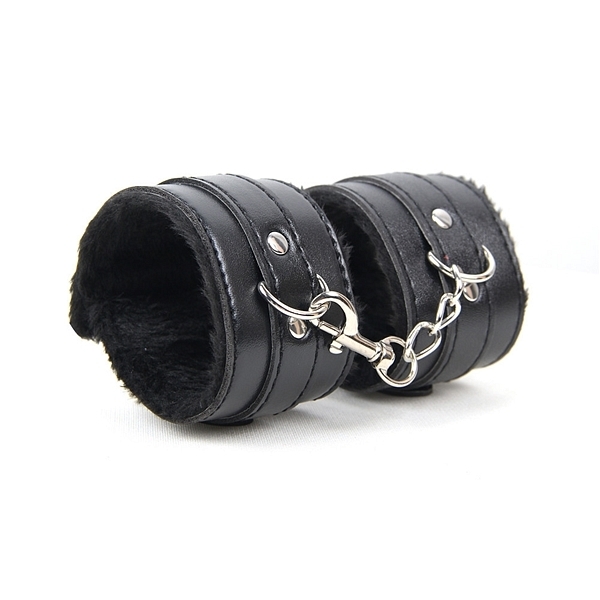 手首を拘束!でも肌に当たる面はフワフワ素材でやさしさをプラス。ベルト穴が4つ付いて、サイズ調節できます。両手首をつなぐチェーンは分離可能(片方は固定です)。●カラー:ブラック