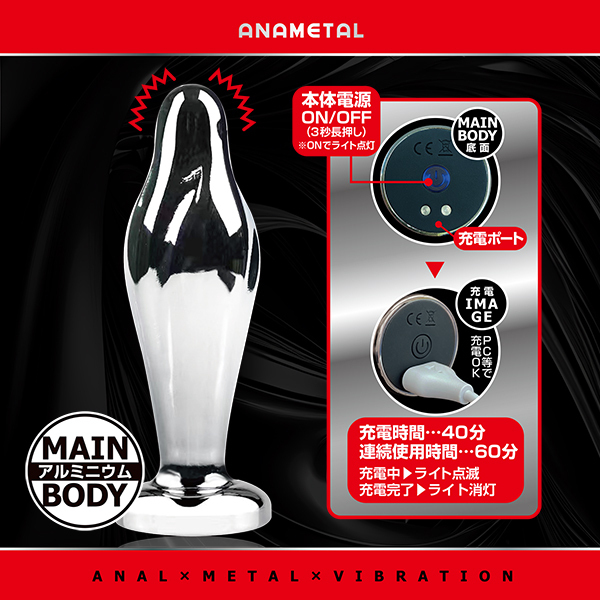遠隔リモートプレイが可能なアナル用メタルプラグ。