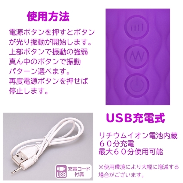 8段階の強弱と優しいタッチの振動が嬉しいの「NEW噂のデンマ」です♪激イキへと導くパワフル振動と20種類ものリズムパターンによる組み合わせで手軽に幅広い振動体験ができる電マです♪セルフ使いでもカップル使いでも楽しめる汎用性の高い電マで、グリップも握りやすくヘッド径はちょうど良いサイズ感!動作音も比較的小さめで価格設定も安価で使い勝手の良い電マとなっています♪3種類のカラーバリエーションでこちらはパープルとなっています。