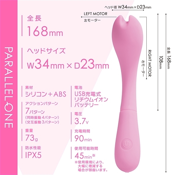 先端に並列で2つのモーターを搭載して、個別に振動させる事が出来るツインモータースティックです。