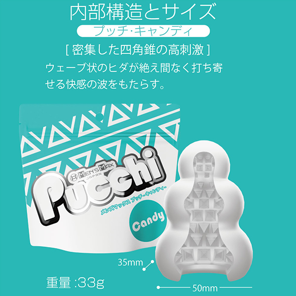 <キャンディー内部構造>「密集した四角錐の高刺激」整然と敷き詰められた四角錘の突起