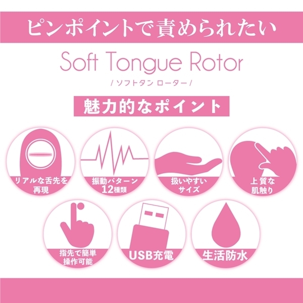 Soft Tongue Rotorは柔かな舌で高速に舐められるような刺激を体感できます。