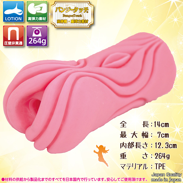 高弾力素材のバンジータッチを採用!挿入してすぐに始まる縦横無尽の螺旋形状で、ゾリゾリ刺激を体感!四葉のクローバーに見える縦ヒダが奥まで続く構造、この縦ヒダにひねりをプラス!縦ヒダの隙間には、絶え間なくヒダ溝が続いています。
