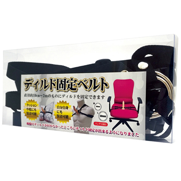 サイズ調整が出来るため直径約10cm〜2mほどの物なら何処でも固定可能!椅子やクッション、更には身体にまで、まさかの場所に取り付けられる♪ディルドを固定するリングは40mmと50mm各一つずつ付属。