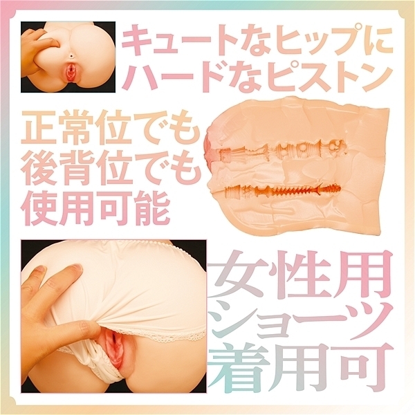 安定感抜群の据置型ホール、2穴使用可能、触り心地は息を呑むほどのリアリティで、キュートなヒップにハードなピストン!正常位でも後背位でも使用可能。