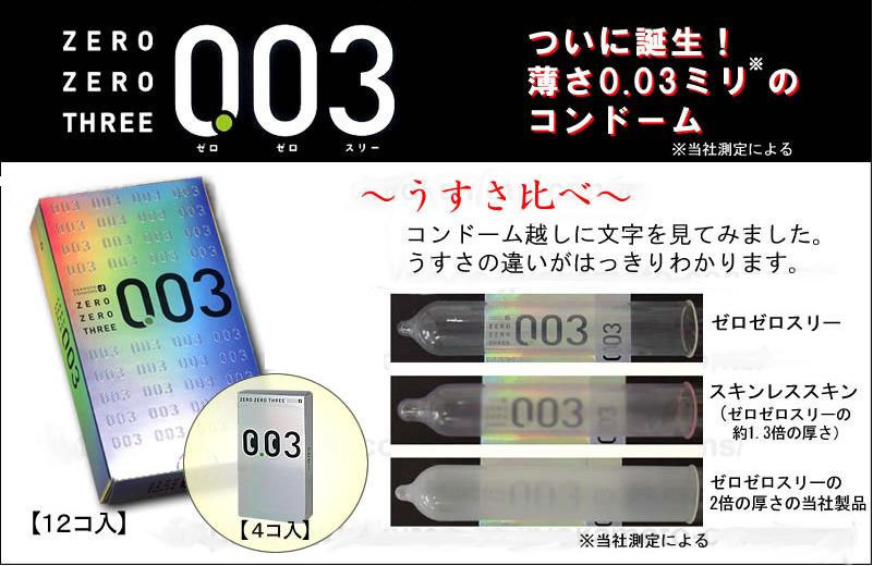 オカモト社の極うすコンドーム「ゼロゼロスリー」レギュラータイプ(12個入)。