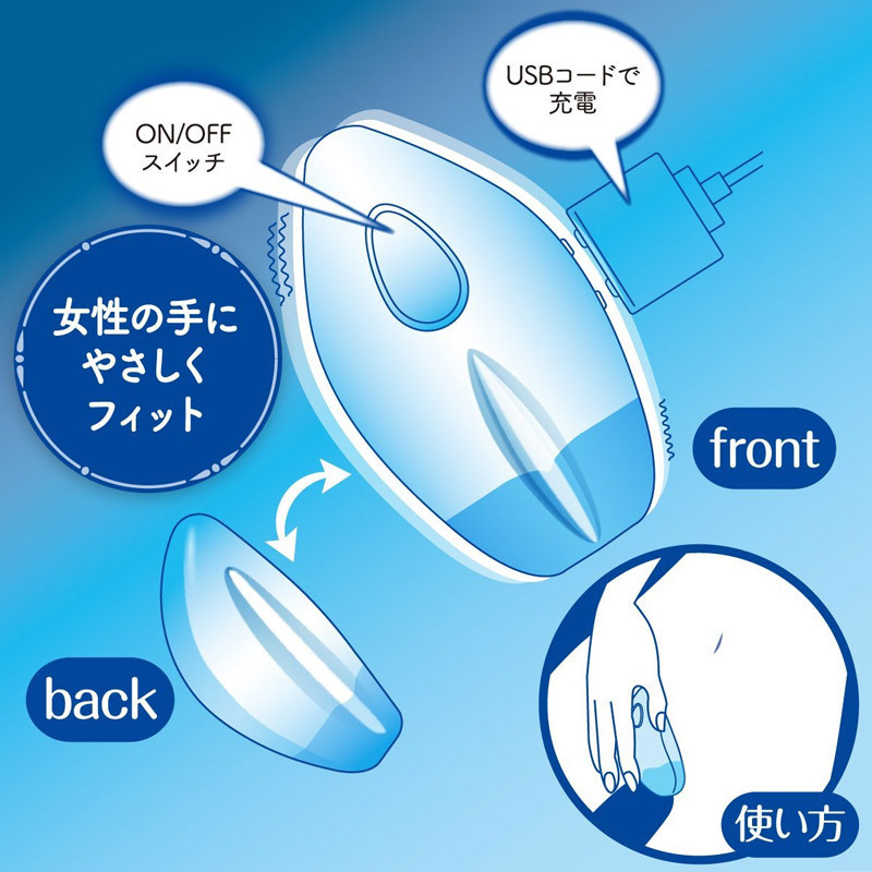 ●パソコンのマウスのようなフォルム●自然と手になじむコンパクトサイズ●利き手不問のセンタースイッチ●USB充電式●ON/OFF切り替えのみの簡単操作。