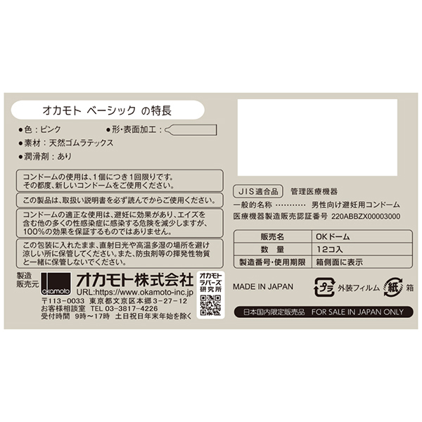 メーカー:オカモト パッケージ:7.6×13.6×7.8cm