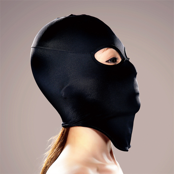 日本国内の工場で縫製され、国産のマイクロファイバー生地を使用したストレッチ素材の目開きタイプの全頭マスク。