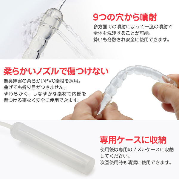 ノズルは無臭無害の柔らかいPVC素材を採用。