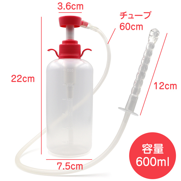 パッケージ:30.0×15.0×7.0cm 本体:22.0×7.5cm・チューブ60cm・先端12cm・容量600ml