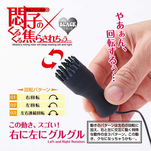 ブラシのヘッドが右に左に回転してピンポイントに刺激!シリコン製のやわらか突起が無数に配置された回転タイプのローター「悶子のくるくる焦らされちゃう」です。