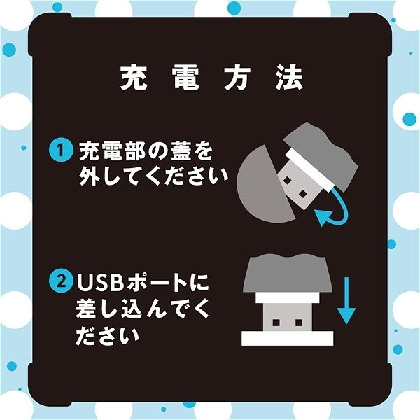 USBポートに差し込むだけのラクラク充電。