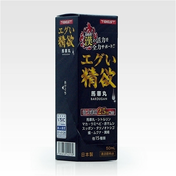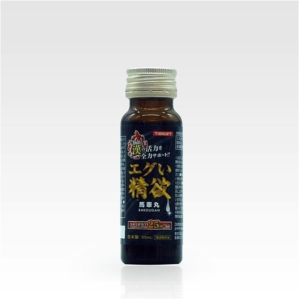 海外でも知られる馬の睾丸をベースに馬睾丸と相性のよい原料をなんと25種類!超絶素材を配合した男の為のドリンク。活力がない、1回戦、合間の2回戦にお役に立つ「エグい」パワードリンクです!